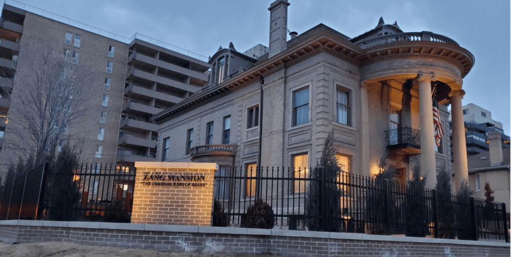 About the mansion: The 38-room Neoclassical Revival mansion, designed by Denver architect Frederick Carl Eberley, was constructed 1902-1904. Adolph J. Zang, son of a Bavarian immigrant Philip Zang, and his wife Minnie raised their family in the home and lived there for 50 years. Zang was the Owner and President of the Zang Brewing Company and was involved with many successful business ventures, becoming one of Denver’s ten millionaires in the late 1800s. Zang Mansion is designated as a Denver Landmark, a Colorado Landmark, is listed on the National Register of Historic Places and currently serves as a professional office.
